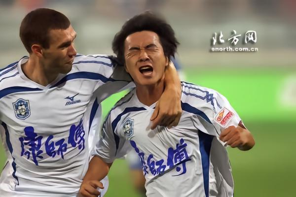 如今,似曾相识燕归来。远赴云南当青训教练的韩燕鸣,又一次义不容辞地穿上了属于他的21号球衣。只见身材只有一米七出头韩燕鸣倚住对手,鬼魅般地从点球点绕到了小禁区的前点,轻巧地胸部一舔,肩膀一扛,就完全令青岛高大的后卫无可奈何,在球落地前的一瞬间,韩燕鸣后撤步右脚凌空轻巧地扫射,球进!