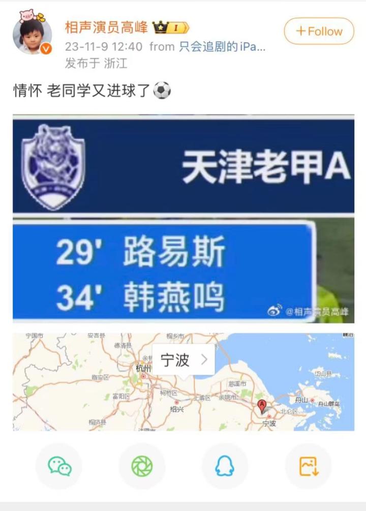 韩燕鸣不但有秀丽的脚法,而且还有俊朗的外形。他长得酷似郑伊健,迷倒了当时无数女球迷,被称为“小燕”。韩燕鸣的高光时刻是2009年,那一年,他不但有巧妙的进球、他的精准的长传和开阔的视野打动了当时的国足主帅高洪波,韩燕鸣得以加入国家队,并在对约旦的小组赛中完成了国足首秀,也是国足告别战。而这个时候,他曾经的同学高峰,也迎来自己的高峰,他逐渐成为了德云社的主力,被尊称为“总教习”,是郭德纲的左膀右臂(左膀为于谦)。