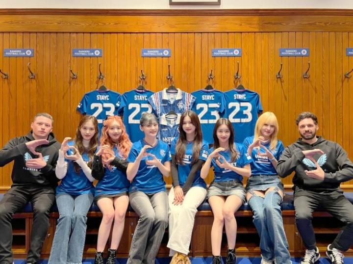 上个月,韩国女团STAYC在美国达拉斯进行巡演时,本来想身穿当地棒球队德克萨斯游骑兵(Texas Rangers)的队服,没想到却穿成了格拉斯哥流浪者(Rangers F.C.)90年代的球衣。 这个乌龙也在社交媒体上引起热议,格拉斯哥流浪者也顺势邀请STAYC造访俱乐部进行参观,这也吸引了很多STAYC的粉丝到场。 STAYC的成员也表示:“这是我们第一次来到苏格兰,我们都非常高兴!我们爱流浪者队!” STAYC是一支于2020年11月12日推出的韩国女子演唱团体,由队长裴秀珉(SUMIN)、朴莳恩(SIEUN)、李彩煐(ISA)、尹势银(SEEUN)、沈姿润(YOON)、张叡恩(J)6名成员组成
