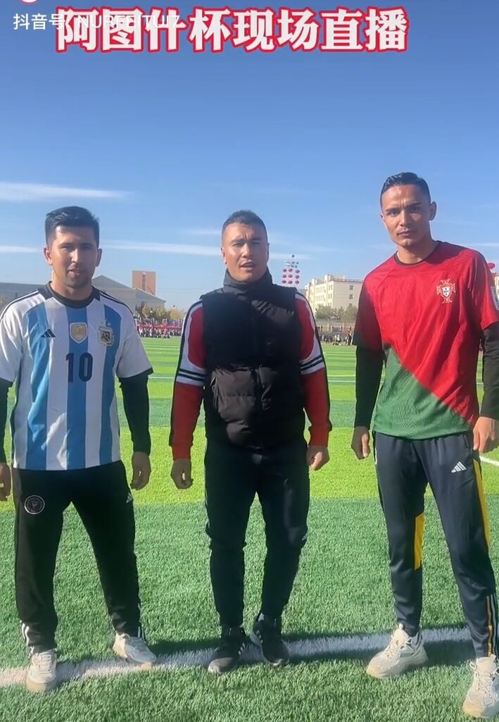 (图片1转播方,图片2,3中著名网红新疆C罗,新疆梅西和努尔飞腿)