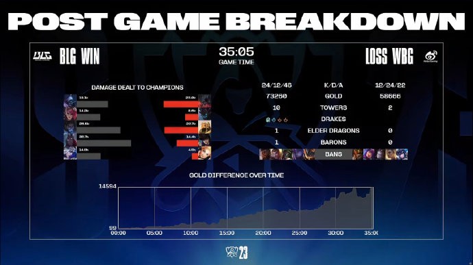 第35分钟,BLG带着远古龙buff一波结束比赛,恭喜BLG扳平比分。