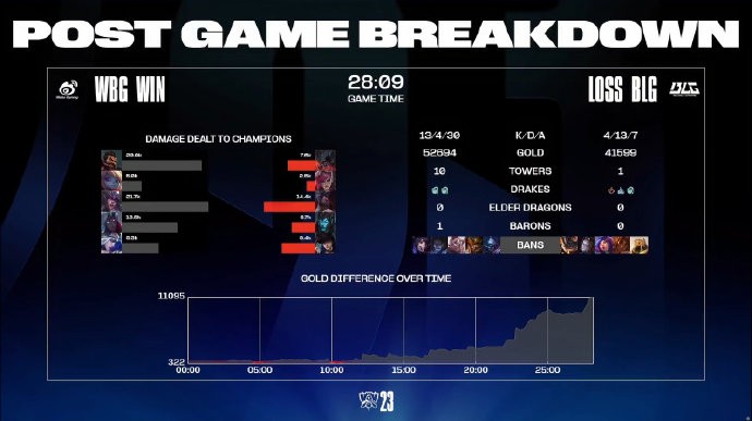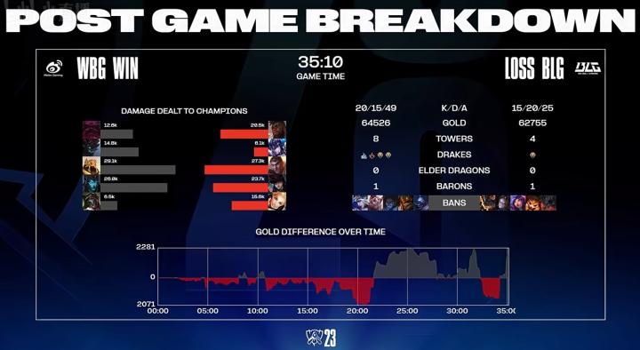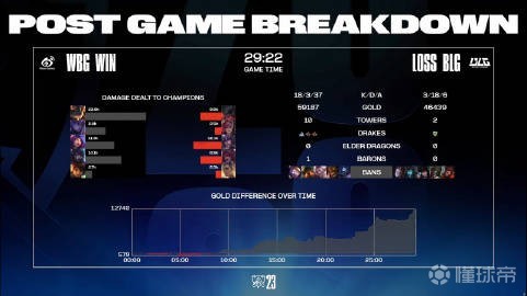 第29分钟,野区团战WBG团灭BLG后结束比赛。