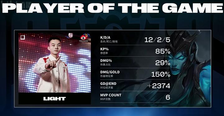 第8分钟,WBG打野下路gank成功,击杀BLG下路双人组后拿下小龙,Light卡莉斯塔收下双杀。
