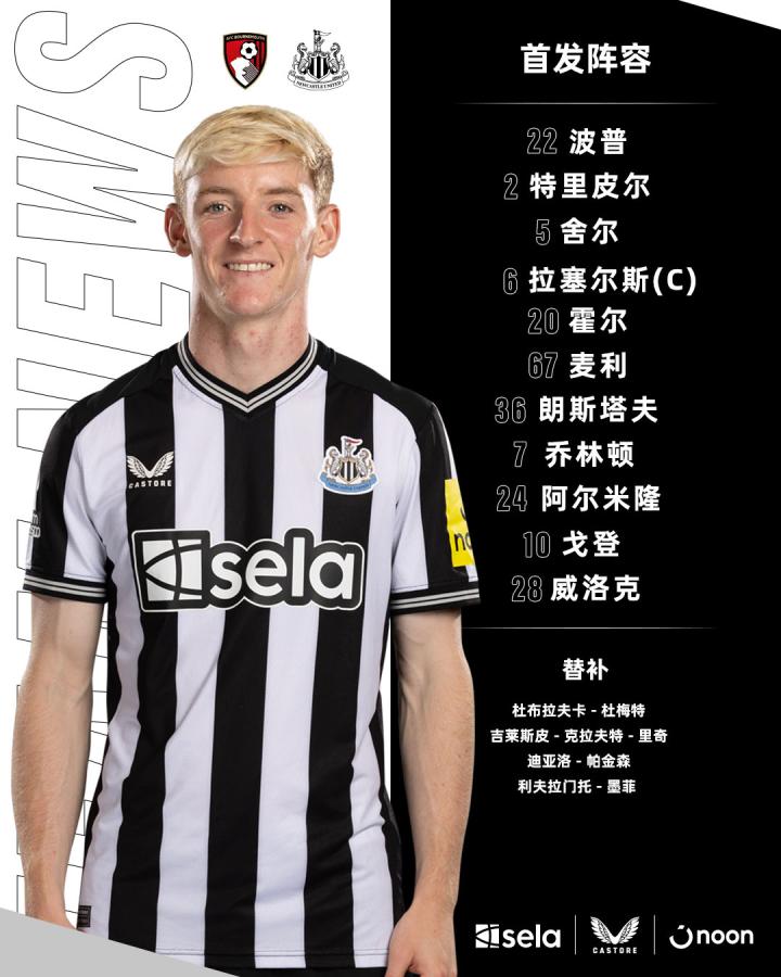 首发出炉🔥伯恩茅斯🆚 纽卡斯尔联戈登、威洛克坐镇...