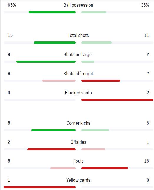 本文正是对本场比赛双方发挥的总结,数据来源sofascore。