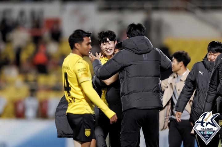 我们再看看K2联赛第38轮的情况。首先在安养,FC安养和安山Greeners上演了一场进球大战,尽管安山在第94分钟扳平比分,但不放弃的安养还是在3分钟后完成绝杀,最终3-2险胜对手。本场胜利后,安养积分达到51分钟,凭借进球数优势反超忠北清州FC,重燃季后赛希望。