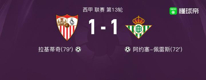 北京时间11月13日塞维利亚vs皇家贝蒂斯,拉基蒂奇得到全场最高的8.1分,阿布德得到全场最低的6.2分