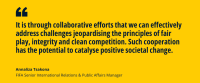 Tsakona女士补充道:“正是通过协同努力,我们才能有效应对威胁公平竞技、诚信和清洁竞争原则的挑战。这种合作有可能催生积极的社会变革,将其影响扩展到体育领域之外” 。