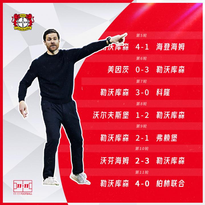 11-11数据库//战绩轨迹勒沃库森:狂飙德甲联...
