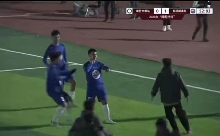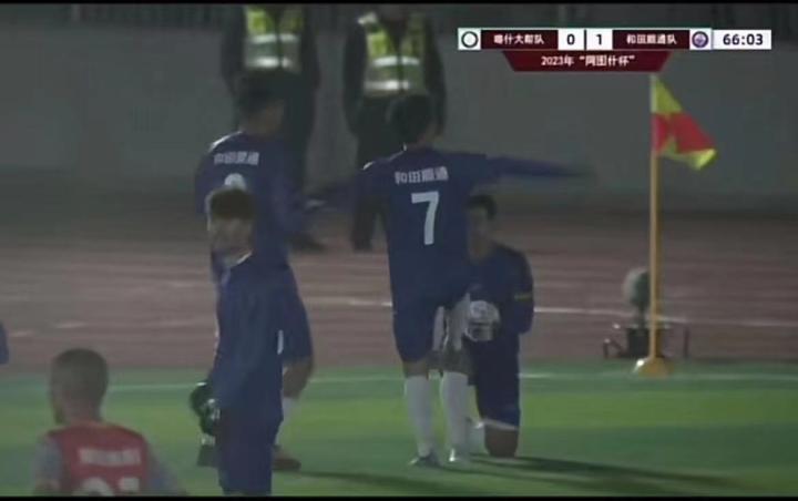 随后喀什队加强进攻迫切想要扳平比分,和田利用对面大举压上的后防空当获得一次单刀球机会,被喀什队后卫在门线处极限解围。