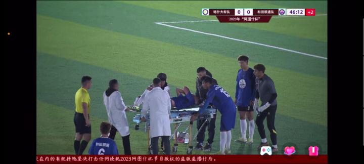 在上半场比赛尾声之际,和田队后卫球员在无对抗状态下受伤,疑似重伤离场。