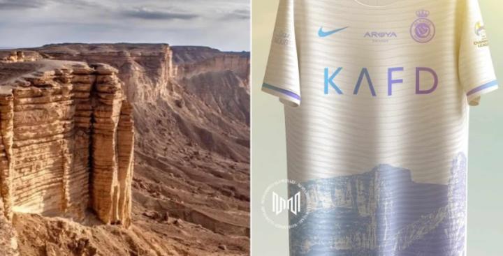 著名足球装备网站FOOTY HEADLINES曝光了利雅得胜利23/24赛季的第三球衣预测照,灵感来自利雅得附近的图瓦伊克山脉的“世界边缘”悬崖。