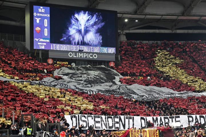 预计周日会有更多的烟花,罗马是“客场”,在开球前,罗马球迷已经站在那里。在南部的Curva也响起了贝利奇的音调,罗马的极端分子在那里展开了一条歌颂罗马士兵的横幅,指明了马上战斗的愿望:“火焰的后裔(战神),历史先驱,”标题写道。在另一端,以马赛克闻名的北部,展示了拉齐奥的图腾,一只金雕和一条来自Sallust的拉丁文线条:“和谐使小国伟大。”这就是罗马城两队的分界线。