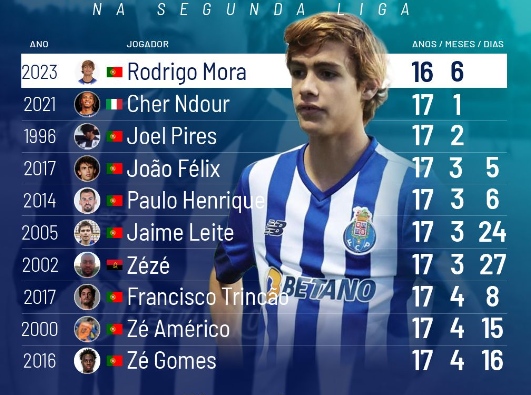 16岁零6月,罗德里戈-莫拉刷新葡甲联赛最年轻进球记录