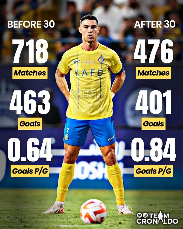 「资讯」克里斯蒂亚诺·罗纳尔多的职业生涯只有两个...平果哈嘹牛x @懂球帝2023-11-14 23:09「资讯」克里斯蒂亚诺·罗纳尔多的职业生涯只有两个赛季-30岁前和30岁后。 30岁前,他共出场718场比赛,打进463粒进球,场均进球0.64粒。 30岁后,他共出场476场比赛,打进401粒进球,场均进球0.84粒。展开更多