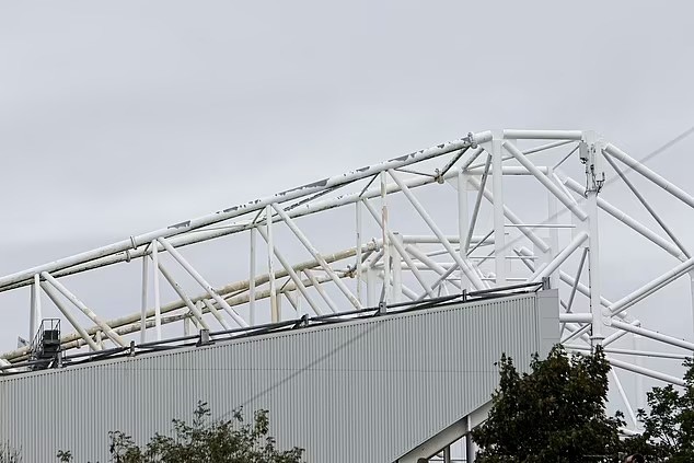 《每日邮报》在现场探访了老特拉福德的情况,在球场外的展板下方,装满垃圾的手推车就放在停车场上,旁边还有巨大的红色料斗。漏水的屋顶,钢架悬臂上的白色油漆已经掉落,露出了里面生锈的金属。