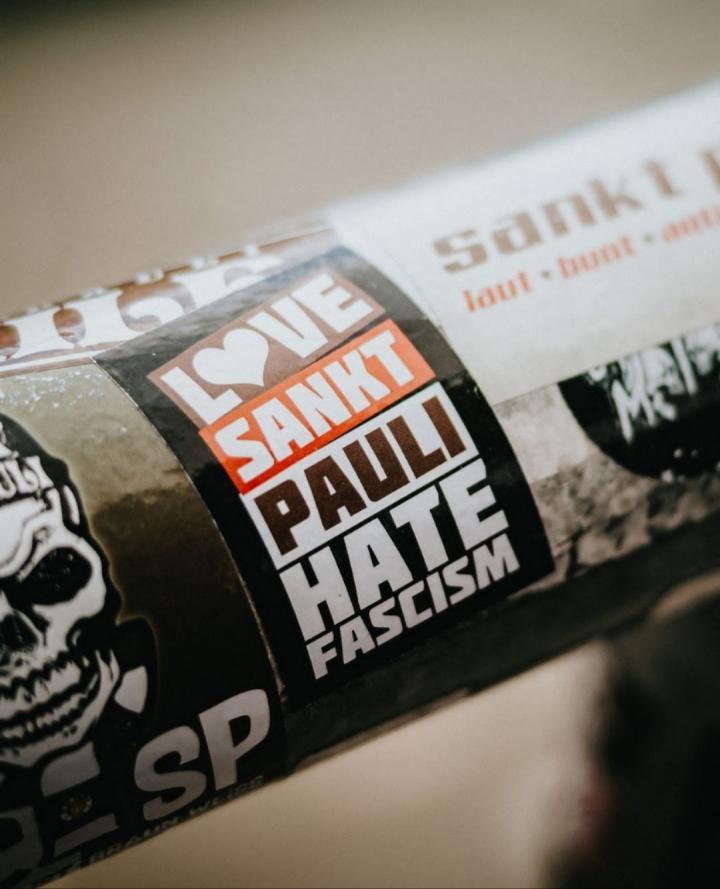 秉持着“球场内禁止一切形式的歧视”原则,“拒绝种族歧视”,“反同性恋歧视”,“反法西斯”,“移民”,“披头士”(是的,Beatles乐队也曾经在汉堡起步)……诸多元素在米勒门球场共生共存,在比赛日的米勒门竞技场,不仅能看到标志性的骷髅旗,还可以看到尝试为同性恋正名的墙绘/tifo,画有切·格瓦拉头像的旗帜……