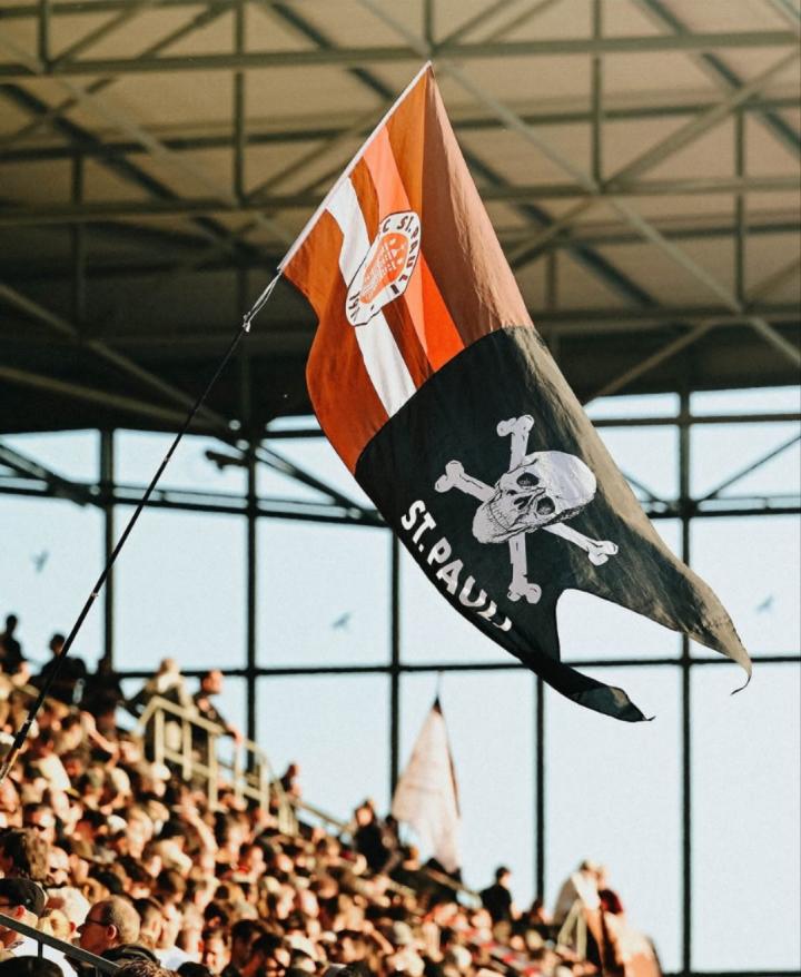 据说在1976年,某位球迷醉酒后,花了10马克买了印有骷髅头和交叉的腿骨的贴画,后来将它贴在自己的球迷装备上,带去球场看球,并迅速引发球迷们效仿,最终,这个十分叛逆的个性标志,渐渐成为了圣保利俱乐部的代号。