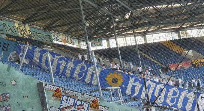 (波罗的海球场,长期悬挂的“利希滕哈根”横幅)