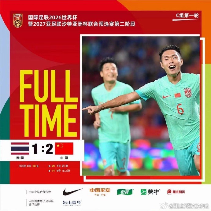 北京时间11月16日,国足客场2-1战胜泰国取得36强赛开门红,打入制胜球的王上源赛后发文,表示要为了梦想而战。