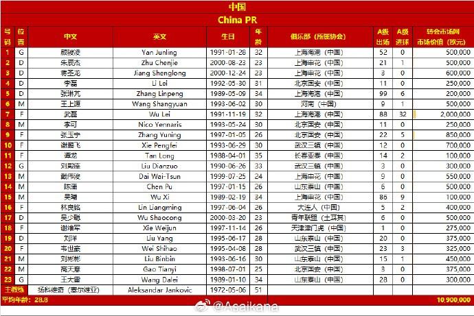 【国足迎战韩国大名单:武磊领衔,蒋光太伤缺,徐浩峰再次落选】