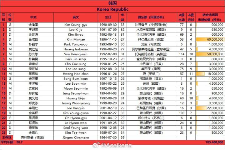 【韩国战国足大名单:孙兴慜、金玟哉领衔,10位旅欧球员入选】