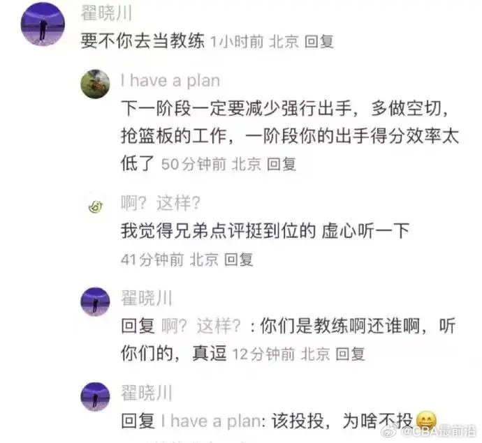 翟晓川回应道:“要不你去当教练,你们是教练还是谁啊,要听你们的,真逗。你哪只眼睛看见没相信队友了,你不去看看助攻了,这会不说这不说那不会了,少传球了,咋滴,我一拿球就得传呗,你想错了,做不到,我觉得是机会我会坚决出手,我青年队这么打,国少、国青、世界比赛都是这么打的,我是打职业的,你是业余的,你教我怎么打球,你是想多了吧,我跟你探讨是想告诉你,干好自己工作,不懂的就听着就好了。”