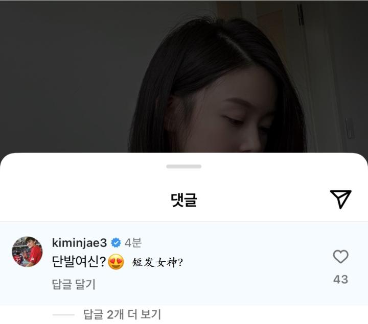 金玟哉的妻子每次在社媒发照片,过不了几分钟金玟哉就会去留言。
