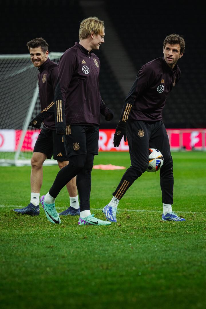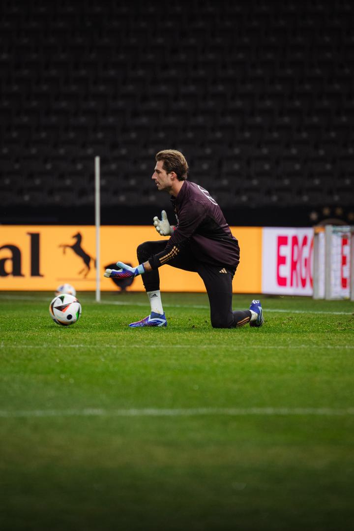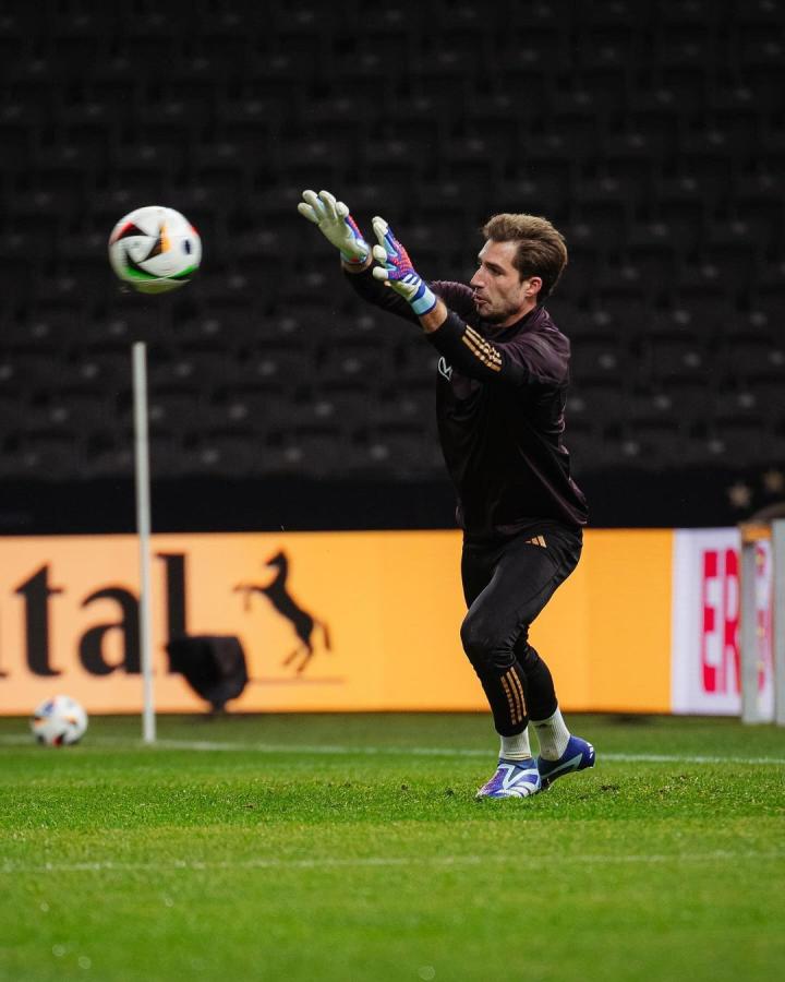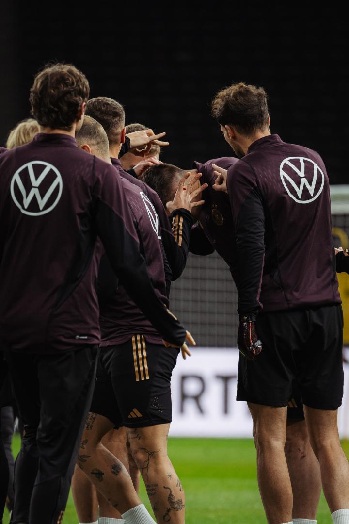 德国男足11月情报更新 明日德国队即将迎来11月国家队比赛日首战,不过纳格尔斯曼的27人大名单缩减为24人,以下是阵容更新情况: 离队: 特尔施特根(背部疼痛) 菲里希(感染) 佳夫(孩子出生) 递补: 普罗梅尔(递补恩梅沙,髋关节问题) 劳姆(递补戈森斯,孩子出生) 昨夜德国队已经到达柏林并完成了踩场训练,纳帅和萨内出席了发布会,以下是内容摘要: 纳帅谈特狮:“特尔施特根将缺席两场国际比赛,他患了急性背痛,明天将返回巴塞罗那。训练结束后,我们会决定明天和周二的门将位置。” 纳帅谈防线:“我们希望有良好的稳定性,希望高位防守,但也要减少给身后球的空间。良好的防守对欧洲杯非常重要,我们希望在比赛中更有优势,减少防守时间。” 纳帅谈维尔茨:“我特别欣赏他的创造力和控球时的勇气。他非常勤奋,跑动距离很长。像维尔茨和穆西亚拉这样的球员能散发进球威胁。” 纳帅谈边后卫:“我们正在为欧洲杯寻找最佳阵容。亨里希斯再次获得征召,如果一切顺利,他明天将首发出场。他的防守稳定性很好,也有必要的前插勇气。” 萨内谈自己保持稳定的原因:“我的准备工作做得很好,本赛季有很好的开始。我已经进入状态,正尽我所能保持下去。我在俱乐部和国家队都很开心,我有远大的目标,一直在努力激励自己。” 萨内谈领导力和角色要求:“我喜欢在球场上承担责任。我非常喜欢我踢的位置,纳格尔斯曼了解我,知道我需要什么,他在比赛中给我自由。” 附:纳帅和萨内发布会及德国队踩场照片
