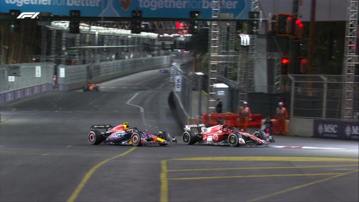 第25圈,拉塞尔和维斯塔潘发生碰撞!勒克莱尔超越斯特罗尔来到第2位。赛会出示安全车。佩雷兹、斯特罗尔、维斯塔潘、拉塞尔、塞恩斯、阿隆索、周冠宇、霍肯博格、马格努森、汉密尔顿进站。周冠宇出站后位列第13位。