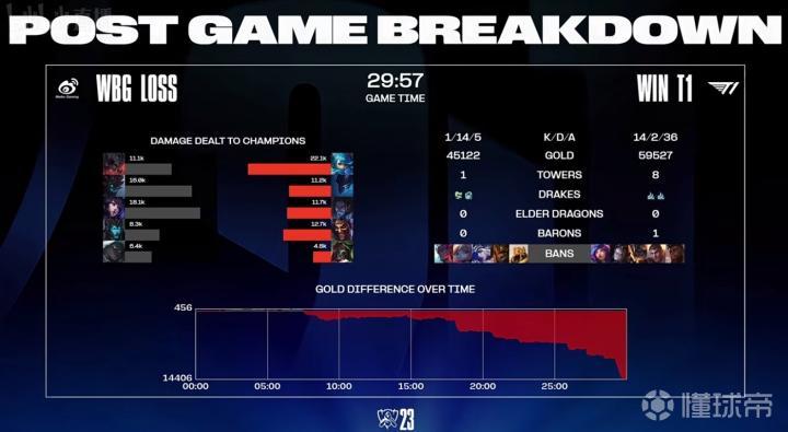 电竞赛事战报2023英雄联盟全球总决赛:WBG vs T1,WBG 0-2 T1,WBG上路明显的差距连失两局。
