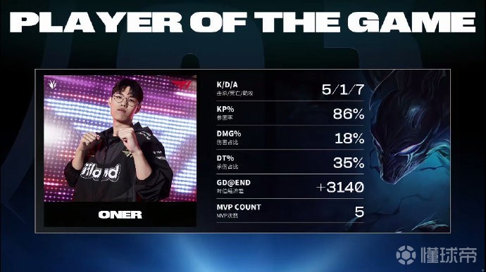 第20分钟,Oner梦魇双杀,T1被追击反打一波0换2。