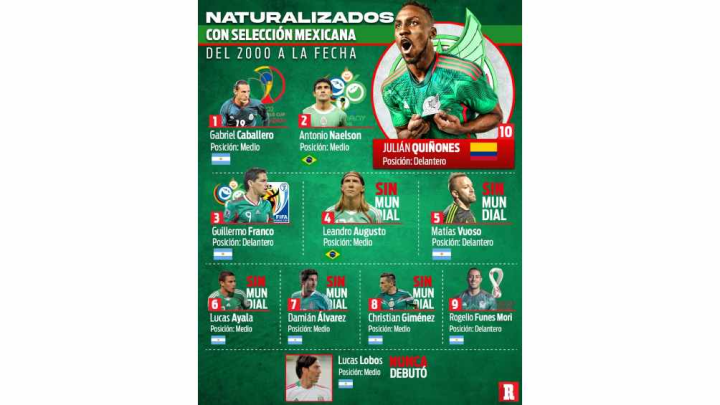 不过,之前这类球员的国家队生涯,总体上是失败多于成功。加布里埃尔·卡瓦列罗(Gabriel Caballero),这位中场球员出道于阿根廷的罗萨里奥中央青训,1995年夏加盟桑托斯拉古纳,开始在墨西哥联赛闯荡。他被墨西哥国家队选入了参加韩日世界杯的大名单,总体发挥中规中矩。在2006年的德国世界杯,墨西哥阵中出现了两名归化球员——安东尼奥·纳埃尔森(Antonio Naelson)和吉列尔莫·弗兰科(Guillermo Franco),两名球员在世界杯有那么一些闪光点,后者在4年后也代表墨西哥参加了南非世界杯。但随后5名为墨西哥出战的归化球员,对国家队的贡献不大,甚至都没有被选入世界杯大名单。直到阿根廷主帅马蒂诺的到来,他把其老乡富内斯·莫里带到了秋冬季的卡塔尔。这中间还有一位叫做卢卡斯·洛沃斯(Lucas Lobos)的归化球员,是在武切蒂奇短暂执教的时期被召入墨西哥国家队的,但他没有在其麾下有过出场。其后继者米格尔·埃雷拉也考虑过征召他,但是洛沃斯以个人原因为由拒绝了。