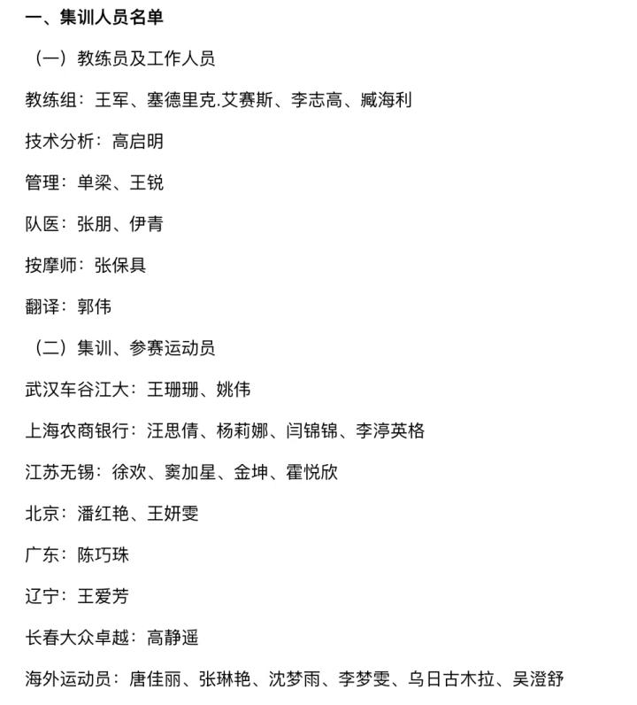 中国女足最新名单:李渟英格、霍悦欣、王爱芳、汪思...