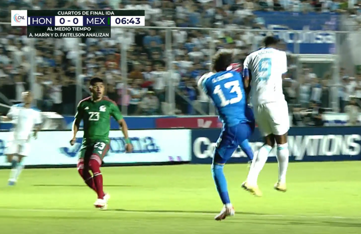 让墨西哥雪上加霜的,是门将奥乔亚的伤势。上半场进行到6分18秒,他在出击的时候和对方前锋安东尼·洛萨诺发生了一次冲撞,萨勒尼塔纳门将痛苦的摸着他的右肩倒在地上。经过治疗后他重新回到场上,在第22分钟,奥乔亚要求换人,于是主帅海梅·洛萨诺就把他换下场,26岁的路易斯·马拉贡镇守墨西哥的球门,然而这位美洲队门将把守的球门2次被洪都拉斯攻破。