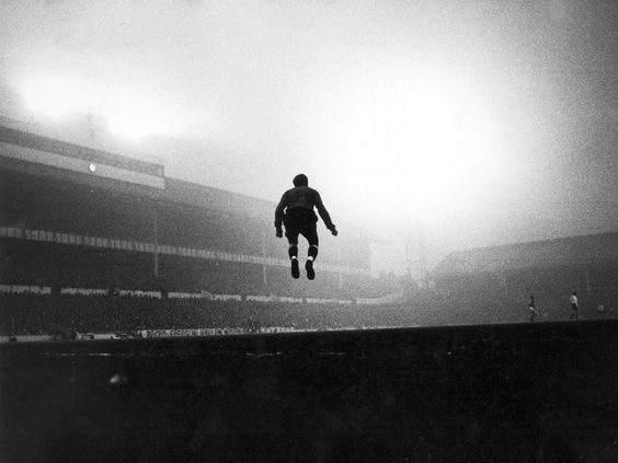 跳跃半空,映衬在白鹿巷远处的泛光灯下,1964 年 1 月足总杯第三轮对阵切尔西的托特纳姆门将约翰·霍洛布雷德 (John Hollowbread) 正在跳跃取暖。热刺是 60 年代的一支强队:1961 年,霍洛布雷德(主要是俱乐部的替补门将)在该赛季获得了双冠王,并于 1962 年和 1967 年再次夺得足总杯冠军,以及 1963 年的欧洲优胜者杯冠军。这张历史照片最初是受《观察家报》委托拍摄的,是著名体育摄影师格里·克兰汉姆 (Gerry Cranham) 拍摄的最知名的照片之一。