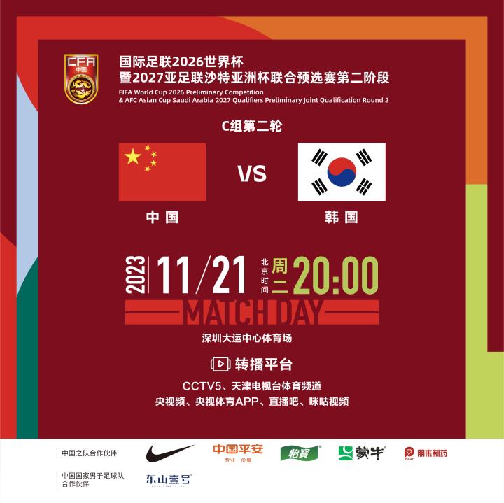 11月21日20:00,中国国家男子足球队将迎来国际足联2026世界杯暨2027亚足联沙特亚洲杯联合预选赛第二阶段的第二场比赛,在深圳大运中心体育场主场迎战韩国队。 CCTV5、天津电视台体育频道、央视频、央视体育APP、直播吧、咪咕视频等多个平台将对本场比赛进行直播,欢迎大家收看,一起为中国队加油 ! 11月20日傍晚,中国队主教练扬科维奇和队员张琳芃参加了赛前新闻发布会。扬科维奇表示:“我们全队在全力以赴备战第二场比赛,毕竟韩国队是世界级水平的球队。同时,我们也对这项赛事充满敬意,我们的目标是晋级世界杯。” 他还表示,上一场在客场拿到的3分对全队非常重要,现在回到主场,面对劲敌,希望把好的状态再延续得久一点。全队都很兴奋,期待着比赛的开始。 张琳芃将在对阵韩国的比赛中迎来自己代表中国队的第100场比赛,他表示,好久没有看到发布会上有那么多记者了,大家都很期待明天的比赛。前几天在泰国开了个好头,希望延续这种势头,打好和韩国队的比赛。“我很珍惜为国家队比赛的每一分钟,这是一种荣耀,我会尽百分百的努力,为了胸前的国旗而战。”