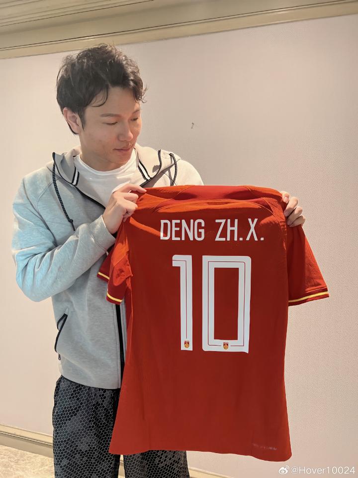 邓卓翔晒国家队纪念球衣:让我们一起为中国足球加油