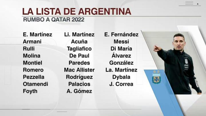 2022年11月12日,阿根廷主教练斯卡洛尼通过视频宣布出征世界杯的26人大名单,此前阿根廷中场里最善于传威胁球、美洲杯夺冠功勋中场洛塞尔索因腿筋伤势无缘世界杯。