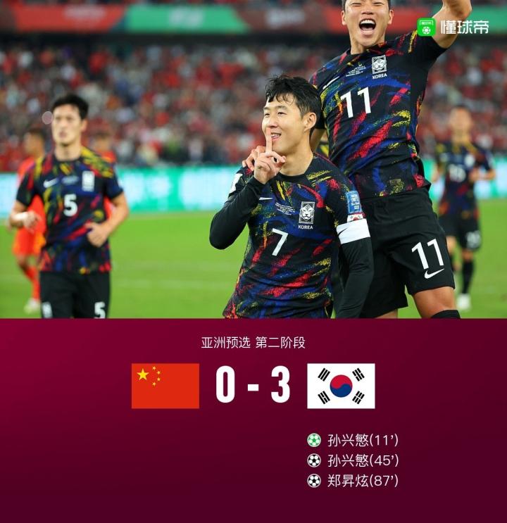 【国足0-3韩国,黄喜灿造点惹争议,孙兴慜两射一传,国足0射正】