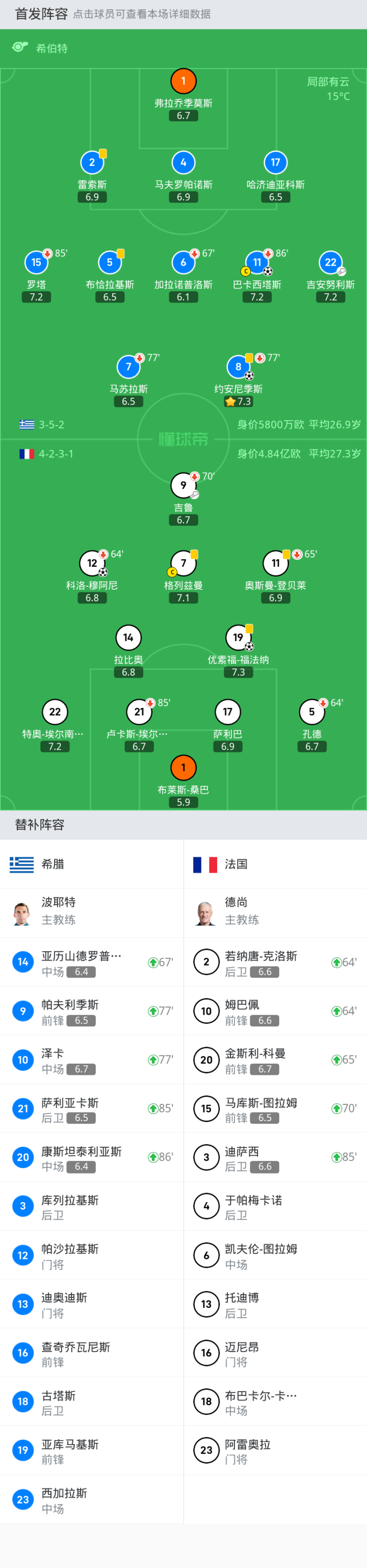 替换下场:86'11-巴卡西塔斯, 77'7-马苏拉斯, 67'6-加拉诺普洛斯, 77'8-约安尼季斯, 85'15-罗塔
