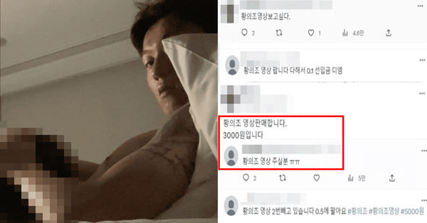 到了今年的6月份,一位IP地址显示为海外,自称为崔秀贞的网友,在推特等多家社交媒体上发了帖子:瞧一瞧,看一看啊,这里有黄义助的激情小视频啊,走过路过别错过啊,2000韩元(约11元人民币)一部,3000韩元多部哈,买一赠一包更新哈!