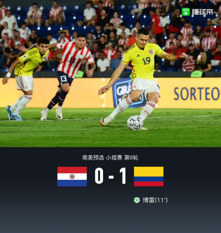 北京时间11月22日南美预选小组赛第6轮,巴拉圭主场对阵哥伦比亚。比赛第11分钟,阿尔德雷特手球送点,博雷点射破门。最终比分巴拉圭0-1哥伦比亚。