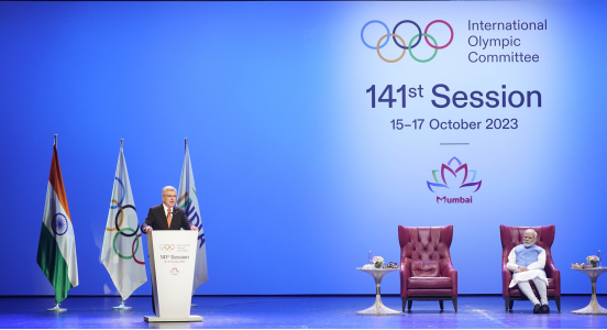 (图)奥委会主席巴赫在IOC全会上发言