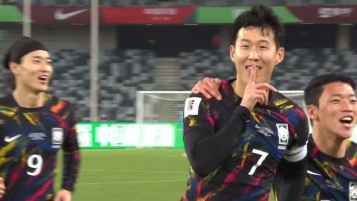 《体坛周报》国足跟队记者王晓瑞表示,昨天比赛孙兴慜打入第一球之后做出的“闭嘴”手势,是在隔空回应前国脚赵明剑的赛前言论。