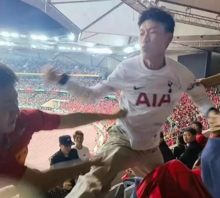 (图)看台上身穿孙兴慜球衣的球迷挑衅其他球迷
