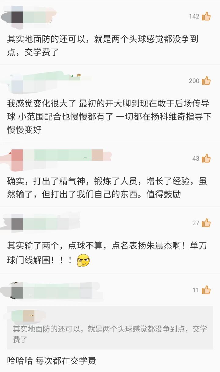 而反观对韩国的这场0比3,虽然输了,但是扬科维奇防守反击、前场抢截的战术方案基本成功,锋线打出了像样的进攻,球员飞身堵空门也非常提气,没有造成运动战丢球。因此在这场比赛的评论区,国足的表现还是得到了大多数球迷的肯定。