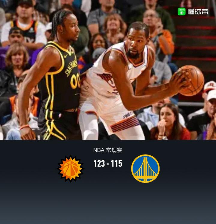NBA战报:太阳123-115拒勇士逆转,杜兰特32+8,库里16+6