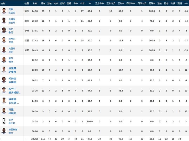 太阳队这边,杜兰特32分8板2助,布克25分8板10助;勇士队方面,库里16分3板6助,克莱23分3板1助,萨里奇17分6板4助。