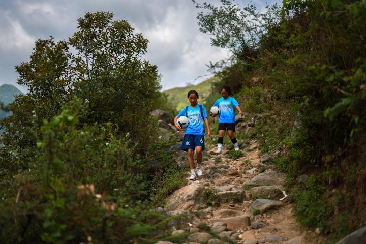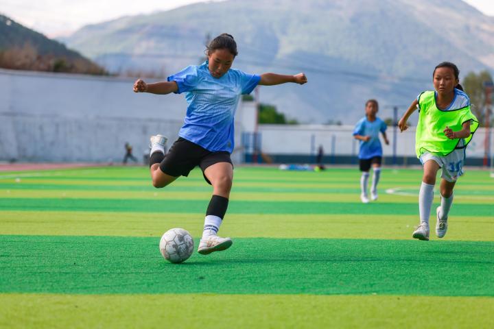 在四川凉山州喜德县的则约小学,女足前锋文文的射门势大力沉,一个小学六年级的女生能有这样的力量,让人印象深刻,她的表现非常配得上自己的7号球衣。“我们老师说7号是足球队里很重要的号码,我的偶像C罗也是7号。”